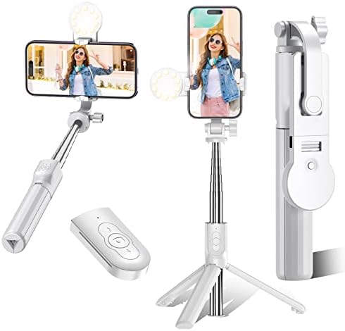 IEVICRE Selfie Stick Tripod, 43” Extendable Selfie Stick with Light, Wireless Remote Bluetooth Stainless Selfie Stick for iPhone 14 13 12 11 Pro XS Max XR X 8 7, Android and Smartphone